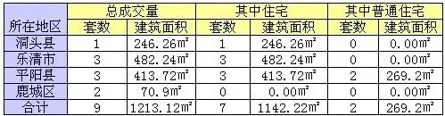 3月5日溫州市成交商品房9套,成交建筑面積1213.12㎡。樂清市成交房產3套,包括晨沐花園2套住宅以及財富新天地家園1套住宅。平陽成交房產3套,包括基石花苑2套住宅以及泰宇花苑A5幢幢1套住宅。另外,洞頭三盤領海成交1套246.26㎡的別墅,鹿城區日月星光花苑和金會昌家園分別成交1套車位。
