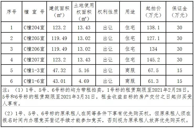 一、拍賣標的:坐落于瑞安市玉海街道興業大樓的6套房產,詳見下表: